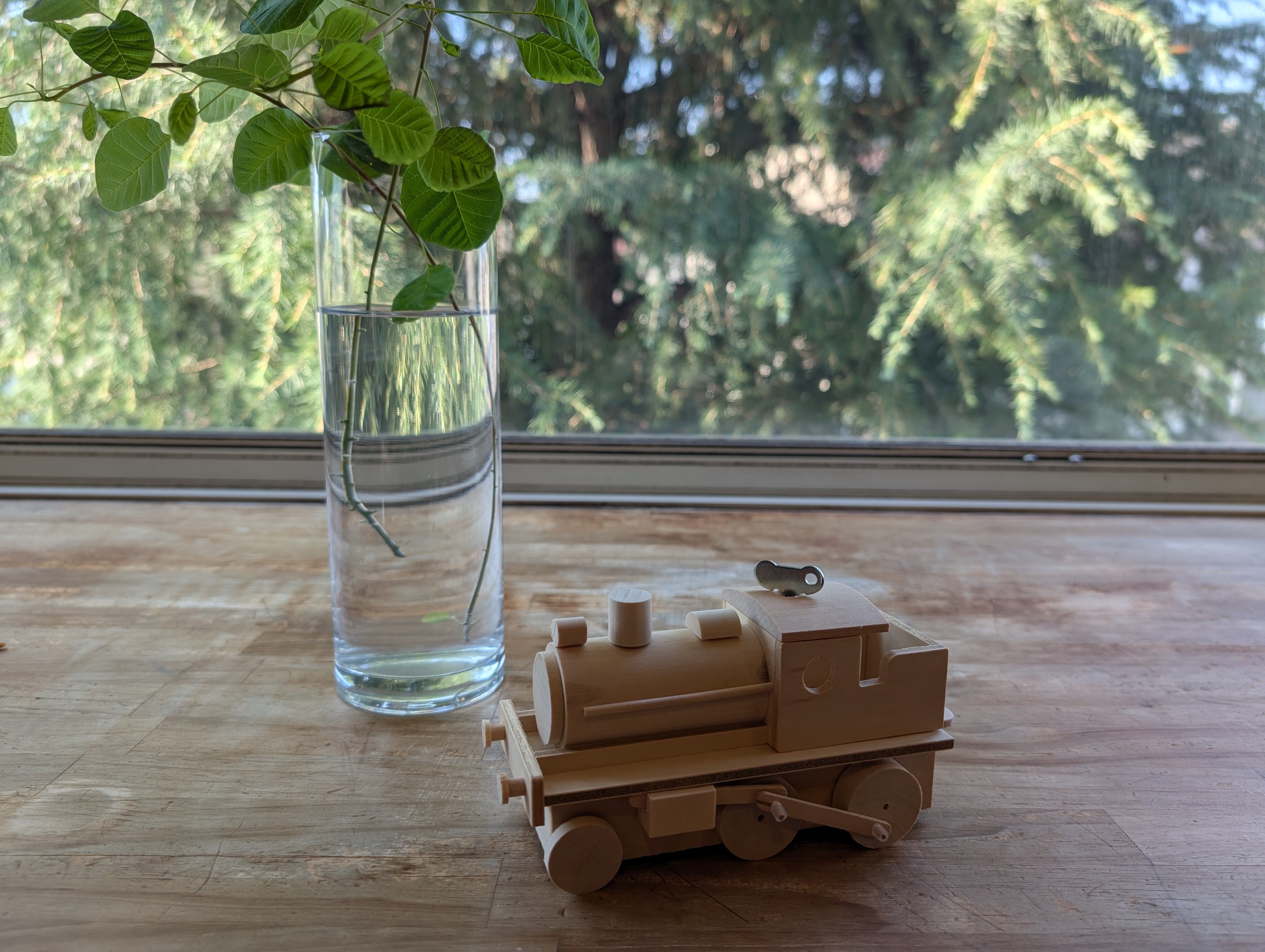 ゼンマイを巻いて、かわいく動く「機関車」です。